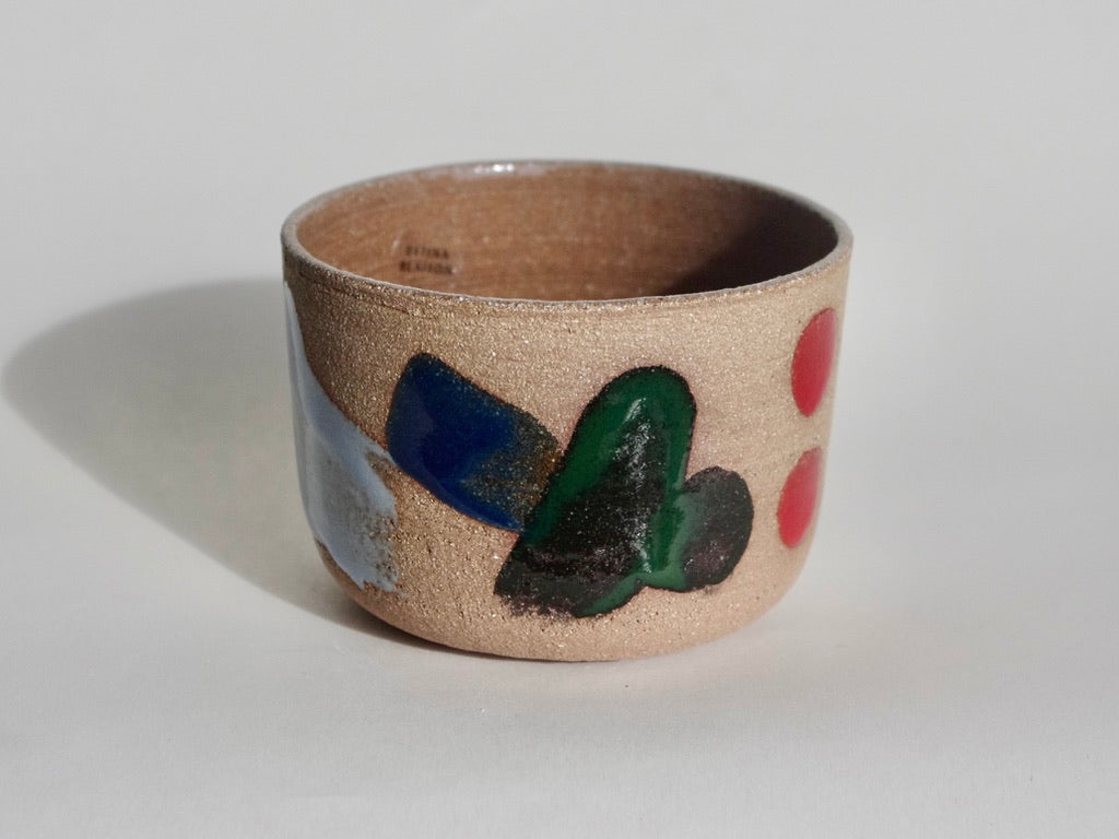 partly glazed outside with colored paint glaze